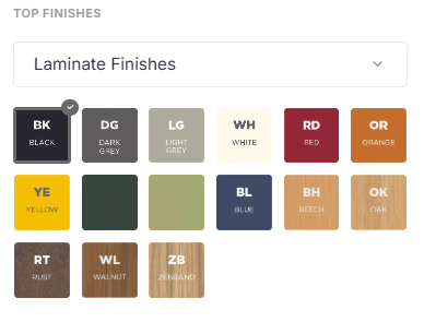 • Available in a range of top types, finishes etc